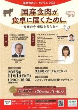 ![]() | 国産食肉シンポジウム2025 「国産食肉が食卓に届くために〜畜産の今 価格を考える〜」 のご案内 |