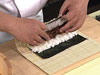 | 5) | Cut the sushi roll in (4) in suitable portions and place them on a dish. |