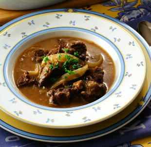 ベルギーではビールを使った料理が数多くあります。その中でもポピュラーなのが、牛肉をベルギービールで煮込んだこのメニューです