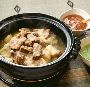 イエメンの代表的な石鍋料理。さまざまな具を石鍋に入れて強い火力で加熱した、辛めのシチューのようなものです。